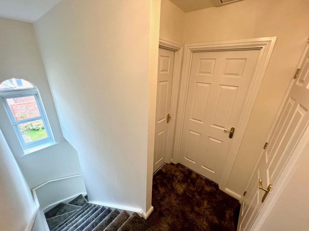 To the first floor, with a feature window from the landing area, the property affords three good sized bedrooms with an en suite shower room to the main bedroom and the main, well proportioned family bathroom.