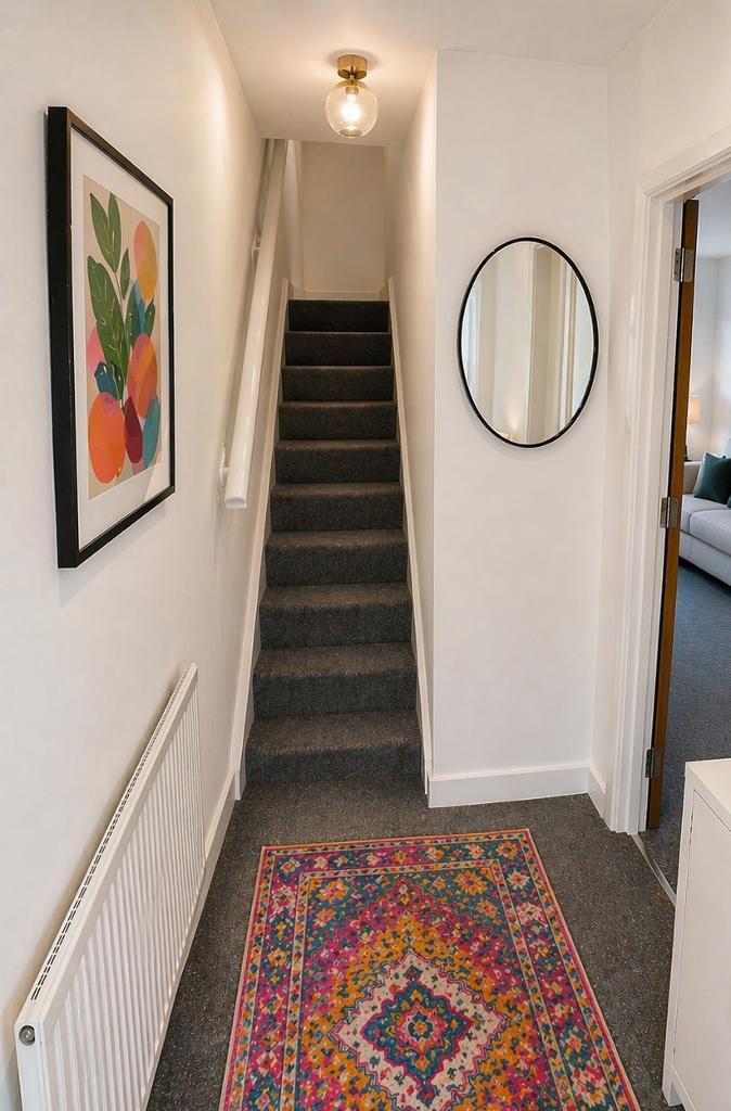 To the first floor, there are three bedrooms and a family bathroom, the bedrooms offering flexibility for families, professionals, or those needing a home office/guest room.